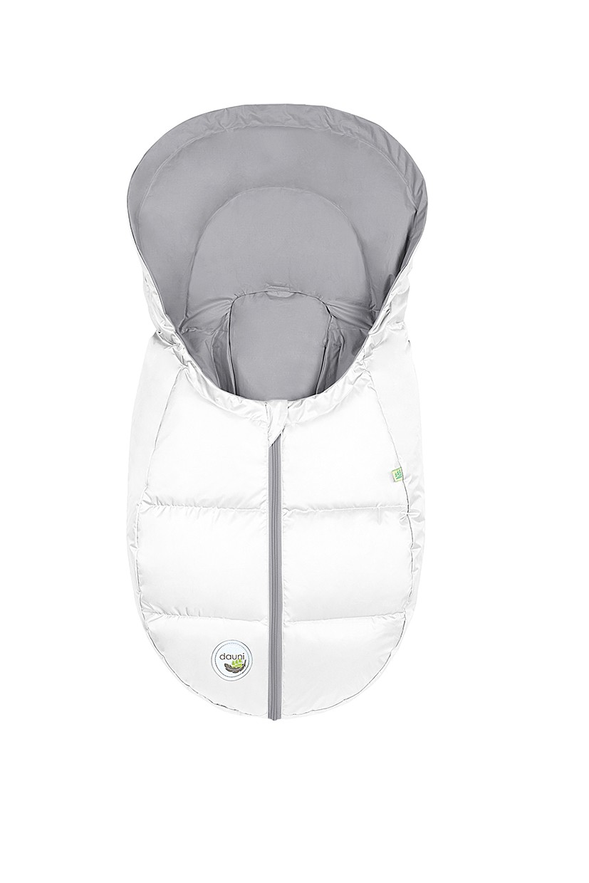 Dauni untuvapussissa on erinomainen lämmöneristyskyky ja se mahtuu hyvin turvakaukaloihin rakenteensa ansiosta. Dauni lämpöpussin kanssa voidaan käyttää turvakaukaloita, joissa on joko kolmipistevaljaat tai viisipistevaljaat. Selkäosa avautuu tarralla.