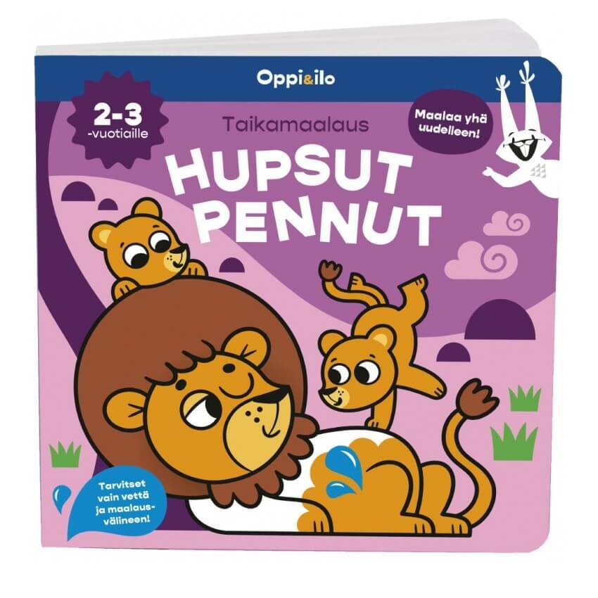 Oppi ja ilo "Maalaa vedellä taikamaalaus - Hassut pennut" on hauskaa puuhaa perheen pienimmille. Vesi tuo kirjan värit näkyviin, ja kun vesi on kuivunut, voi maalaamisen aloittaa uudestaan. Turvallisuussyistä kirjan mukana ei tule sivellintä, mutta maalaus onnistuu vaikka kastamalla vain sormenpään veteen. Sivut pystyy irroittamaan kirjasta, jolloin maalareita voi olla enemmänkin. Ostettavissa erikseen on vedellä täytettävä pensseli.