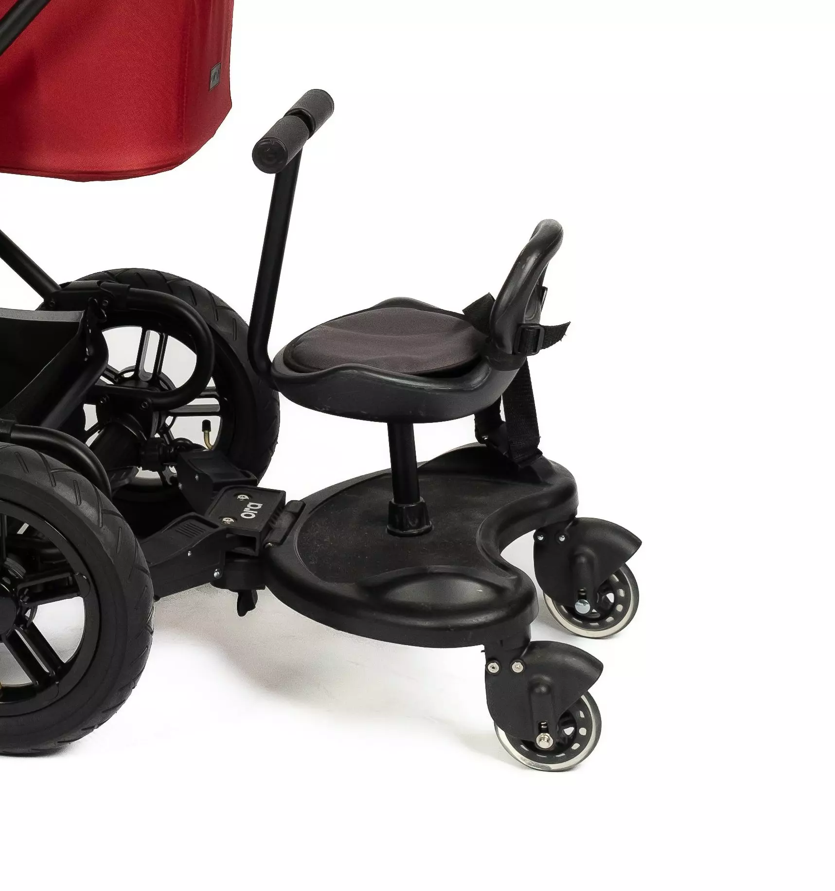 Ora seisomalaita istuimella on yleismallinen seisomalauta, joka on sopii lähes kaikkiin lastenvaunuihin. Seisomalaudalla vanhempi lapsi voi matkustaa joko seisten tai istuen. Istuimen mukanan tulee pehmustettu ja irroitettava istuintyynt, joka takaa mukavan matkan pehmustettujen kädensijojen kanssa. Seisomalaudan korkeutta, leveyttä ja etäisyyttä vaunuista saadaan säädettyä. Asennus ei vaadi työkaluja.