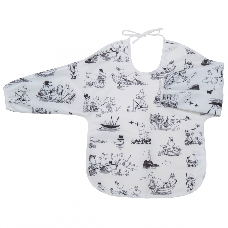 Rätt Start muumi hihallinen ruokalappu Musta-valkoinen