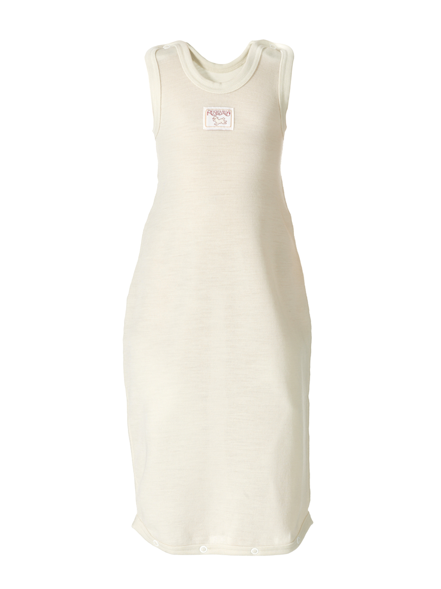 Ruskovilla unipussi on 100% luomumerinovillaa. Unipussin pohja suljetaan neppareilla ja pussi sopii hyvin vauvalle pitkään olkainten säätövaran ansiosta. Unipussin pituus on koossa 0-1 vsuurimmalla nepitysvaralla noin 73 cm (olkapää - pussin pohja) ja 1-2 v unipussissa n. 90 cm.