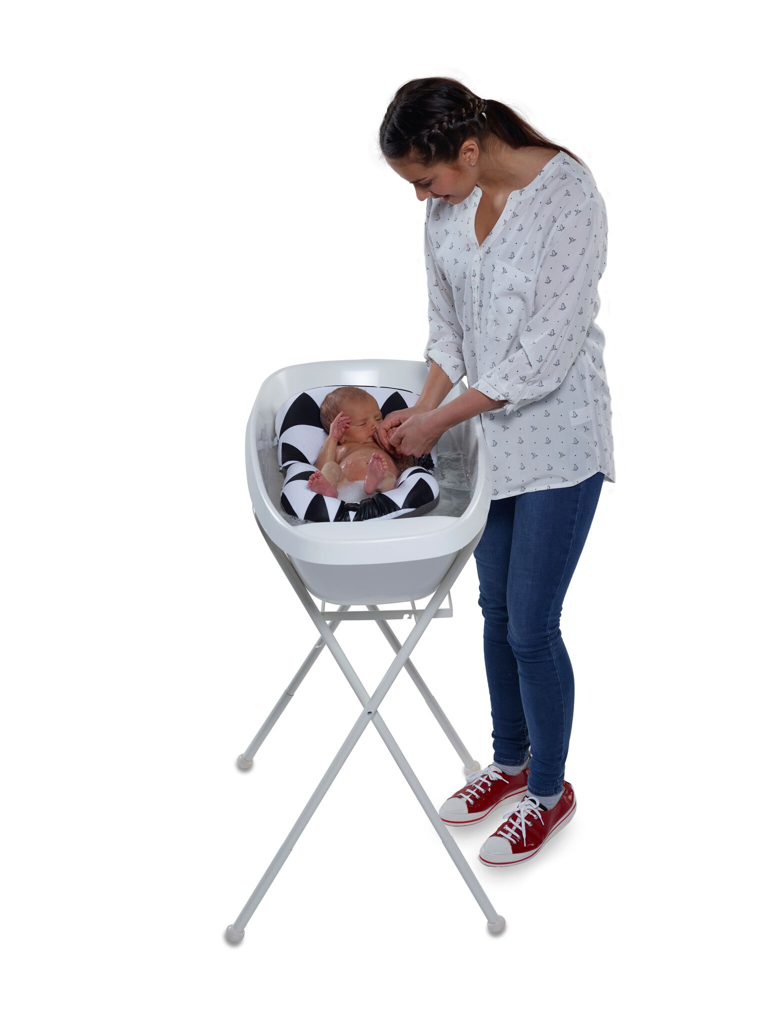 Tämä oli pelastus kylpyhetkiimme. Äitin selkä kiittää ja vauva nauttii kylvystä.
