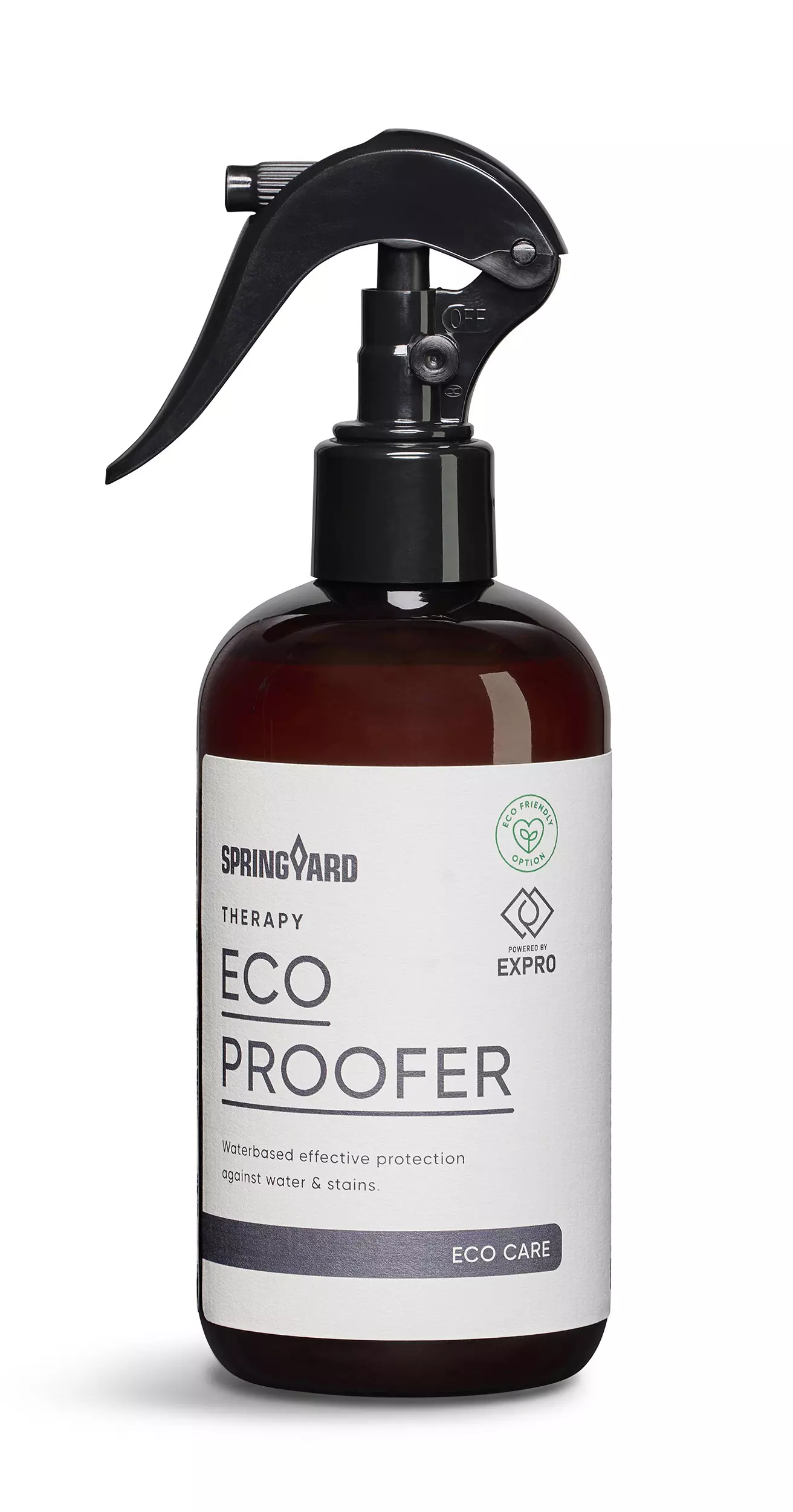 Springyard ECO Proofer suoja-aine suojaa tehokkaasti tekstiilejä lialta ja kosteudelta. Ympäristöystävällinen ECo -suihke sopii useille eri materiaaleille, kuten esim. nahalle, tekstiilille, TEX-kalvoisille materiaaleille ja mokkakankaalle. Springyard suoja-aine sopiikin erinomaisesti rattaille ja hoitolaukuille. Suihke tarjoaa kestävän suojan, eikä vaikuta materiaalin hengittäviin ominaisuuksiin, ja sitä voidaan käyttää myös sisätiloissa.