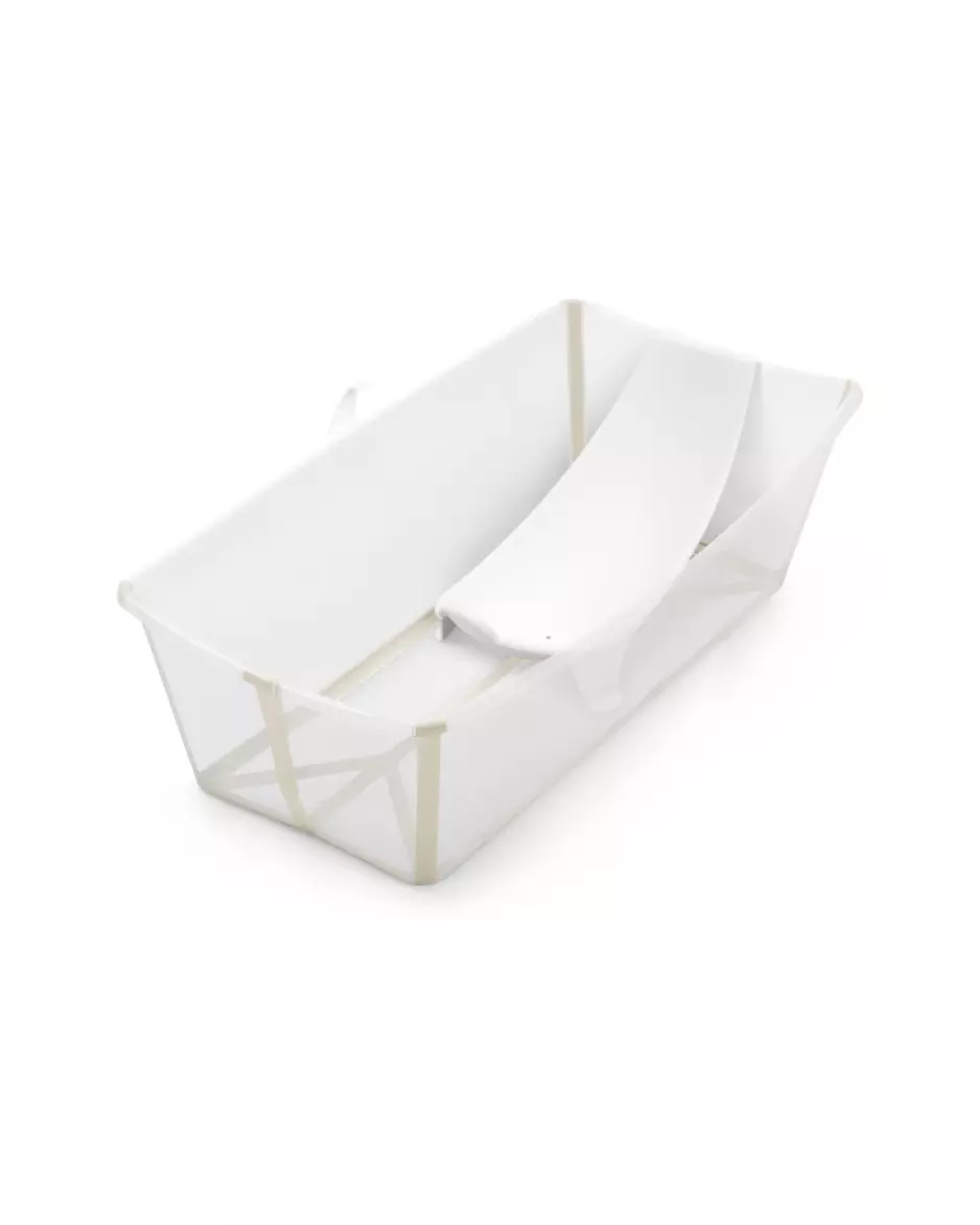 Stokke Flexi Bath XL kokoontaittuva amme ja Flexi Bath kylvetystuki 0-8kk ikäiselle lapselle. Flexi Bath XL on suurempi kokoinen amme suositusta kokoontaittuvasta Flexi Bath ammeesta. Flexi Bath XL amme kasautuu pieneen tilaan ja on ihanteellinen säilytettäväksi niin kotona, matkoilla kuin mökilläkin. XL amme sopii vastasyntyneestä noin kuusi vuotiaaksi asti. Kaksi lasta mahtuu XL ammeeseen helposti kylpemään yhdessä.