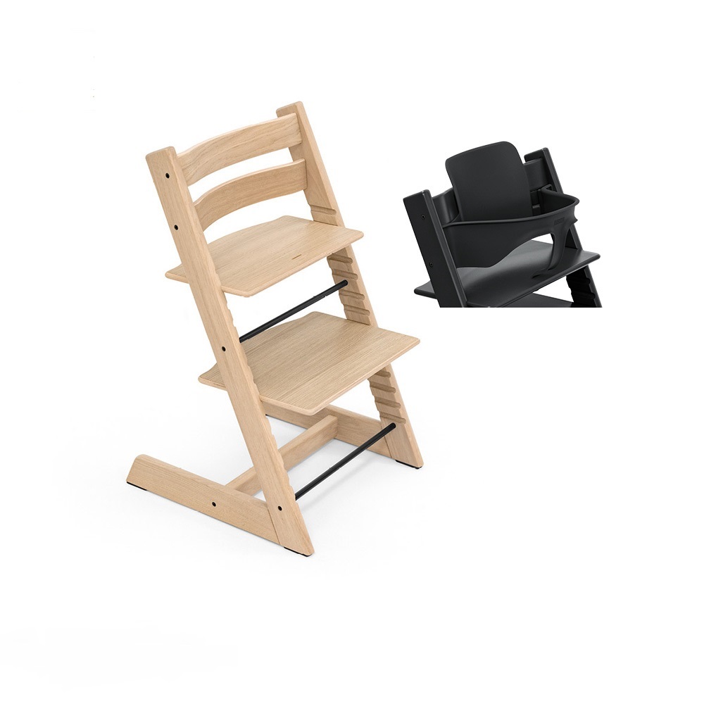 Stokke Tripp Trapp on kasvavien syöttötuolien uranuurtaja, joka on suunniteltu jo vuonna 1972. Ainutlaatuisen syöttötuolin käytön voi aloittaa jo vauvasta erikseen ostettavan Newborn Set:n kanssa. Syöttötuoli kasvaa aina aikuisikään asti. Paketti sisältää Tripp Trapp tuolin ja Baby Set 2 etukaaren, jonka avulla syöttötuolin voi ottaa käyttöön 6kk iästä alkaen.