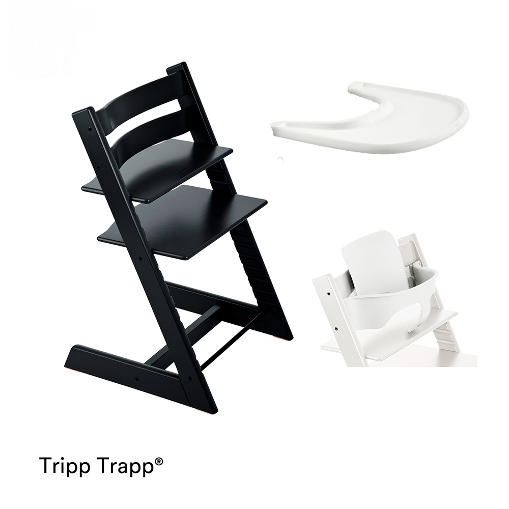 Stokke Tripp Trapp on kasvavien syöttötuolien uranuurtaja, joka on suunniteltu jo vuonna 1972. Tämä kätevä Tripp Trapp aloituspaketti sisältää Tripp Trapp tuolin (Black, pyökki) ja Baby Set 2 etukaaren (alk 6kk+, black) ja tarjottimen valkoisena. Ainutlaatuisen syöttötuolin käytön voi aloittaa jo vauvasta erikseen ostettavan Newborn Set:n kanssa. Syöttötuoli kasvaa aina aikuisikään asti.