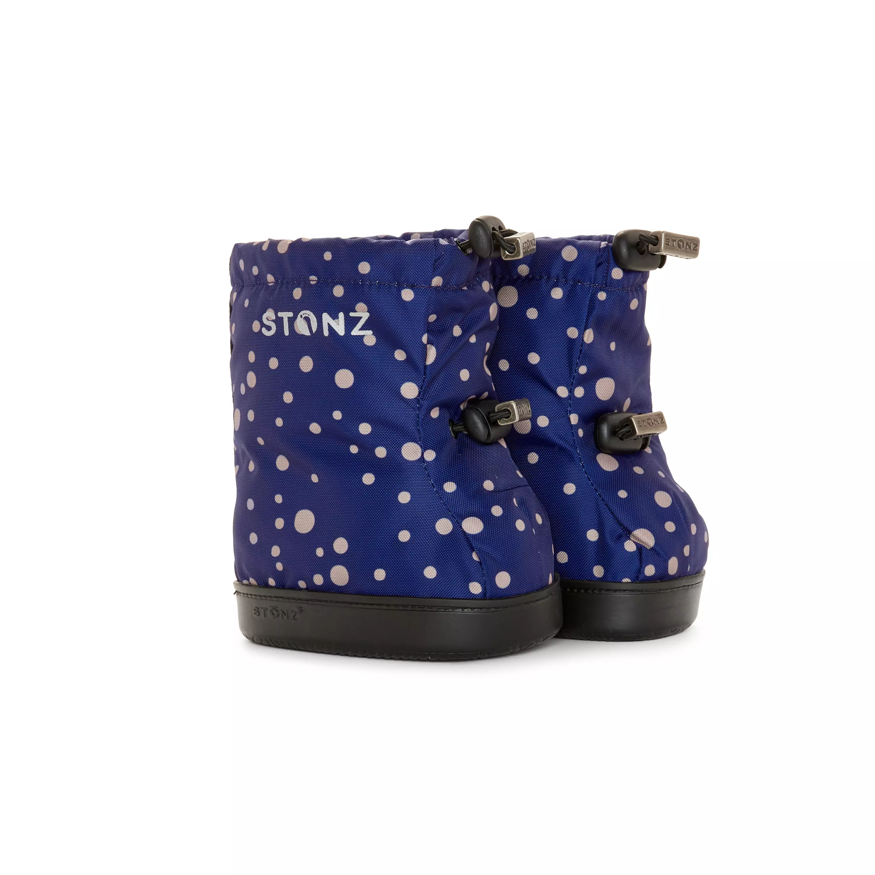 Stonz Booties töppöset sopivat niin syksyyn, kevääseen kuin talveen. Tai jopa Suomen kesiin. Talvella töppösiin voi ostaa lisävarusteena myytävät Linerz-sisukset, jotka antavat lisälämpöä. Töppöset on valmistettu vettähylkivästä ja tuulenpitävästä 600D nylonkankaasta. Sisäpuolella on pehmeä fleece-sisus. Töppösissä on kaksi kiristettävää kuminauhaa, jotta ne saadaan sopimaan juuri oikein lapsen jalkoihin. Booties töppöset ovat erinomainen valinta kävelemään opetteville ja konttaaville lapsille.