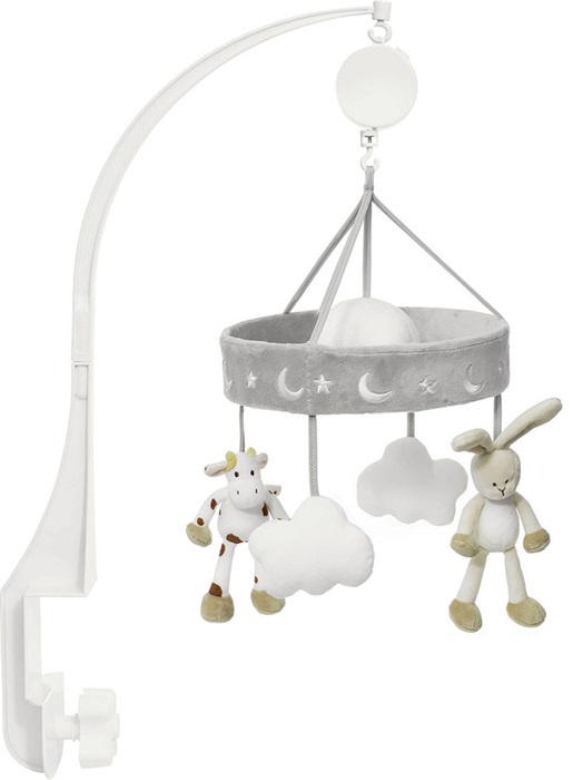Teddykompaniet Diinglisar mobile on pinnasängyn laitaan kiinnitettävä mobile, joka tuudittaa lapsen uneen. Mobilesta roikkuu pehmeät kaniini ja lehmähahmot sekä kaksi vaaleaa pilveä.... Lue lisää