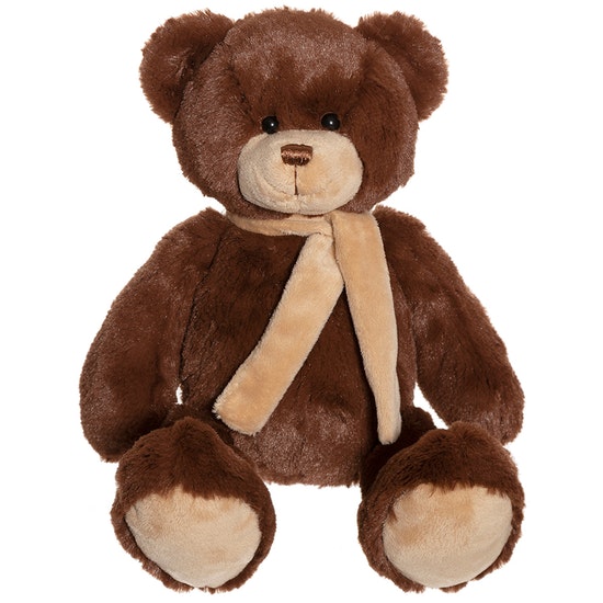 Teddykompaniet Eddie pehmolelu nalle on suloinen ja todella pehmeä ruskea nalle. Nallella on synteettisiä rakeita pepussa, joten se voi istua itsenäisesti. Nallella on beige kapea kaulahuivi kaulassaan.