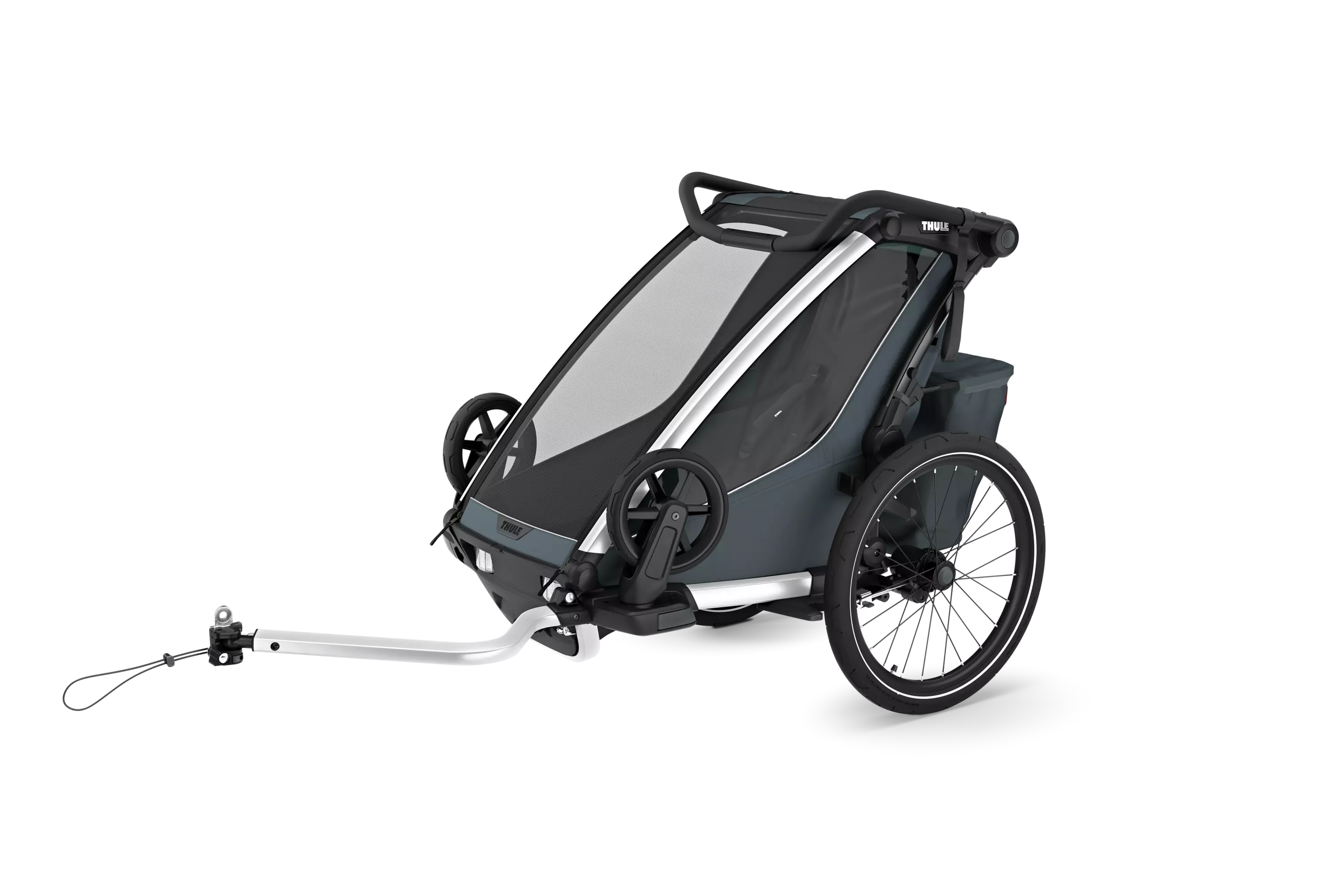 Chariot Cross 2 urheilukärryn ergonomiset istuimet saadaan kallistettua vain yhdellä kädellä päiväunia varten. Plyysivuoratut istuimet ovat miellyttävän pehmeät ja mukavat pitkilläkin lenkeillä. Istuinten modulaarisuuden ansioista kärryyn voi laittaa yhden lapsen istumaan keskelle, tai kaksi lasta kummallekin puolelle. Urheilukärryn mukana tulee sadesuoja ja aurinkokuomu. Säädettävä jousitus tekee matkasta aina miellyttävää lapselle yhdessä ilmavirtausta optimoivien tuuletusaukkojen kanssa. Erillinen XL-tavaratila voidaan siirtää sivuun lenkkeilyn ajaksi. Chariot Cross 2 urheilukärryn uudistettu vetoaisa mahdollistaa peräkärryn helpon ja turvallisen kiinnityksen polkupyörään vain yhdellä kädellä. Urheilukärryssä on irroitettava Thule Delight -takavalo, sekä heijastimet sivuilla ja pyörissä.