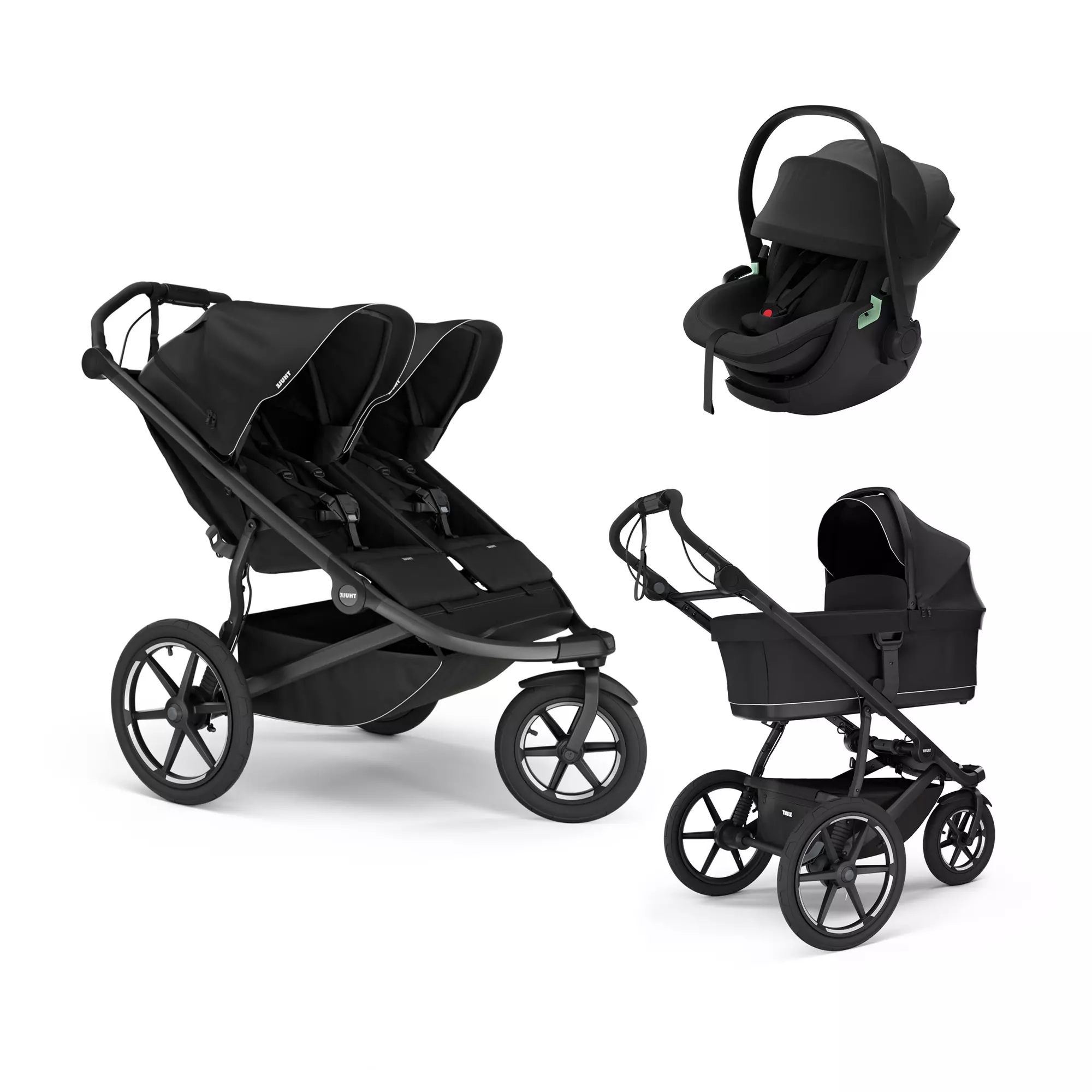 Thule Urban Glide 3 Double tuplarattaat vaunukopalla ja Thule Maple turvakaukalolla