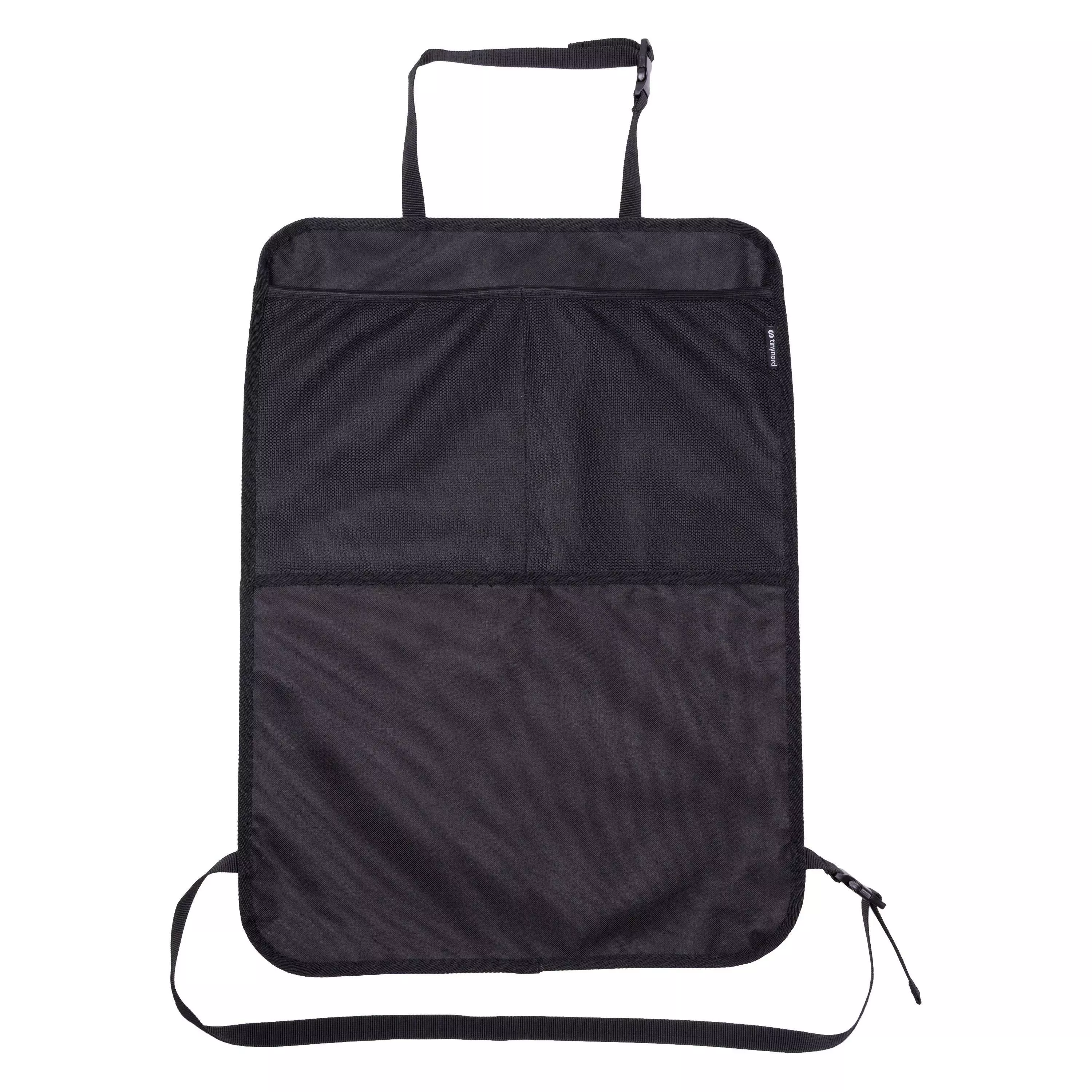 Tinynord kurasuoja etuistuimeen suojaa etupenkin selkää lapsen kengiltä. Se on helppo kiinnittää istuimeen. Suojassa on kaksi verkkotaskua, johon saa tarvittavat tavarat matkan ajaksi.