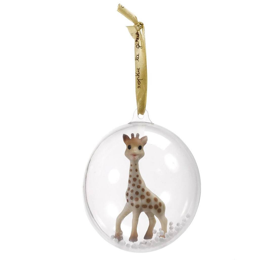 Sophie La Giraffe joulupallo on kaunis lahja lapselle! Pieni Sophie kirahvi on joulupallon sisällä, ja pallon voi ripustaa kuusen oksalle. Pallon sisällä on myös pieniä valkoisia palloja, jotka tuovat mieleen lumen.