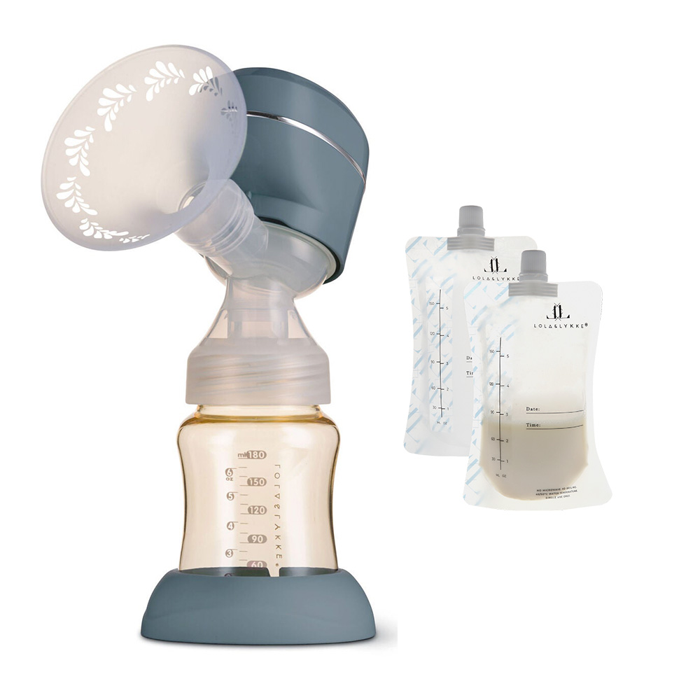 Lola & Lykke sähkökäyttöinen rintapumppu ja maidonsäilytyspussit -paketti sisältää langattoman rintapumpun ja 30kpl maidonsäilytyspusseja. Kevyt ja hiljainen rintapumppu on varustettu älykkäällä kosketusnäytöllä ja se on kompaktin kokoinen. Kaunis langaton muotoilu takaa miellyttävän ja kätevän pumppauskokemuksen missä ja milloin vain. Pumppu ladataan mukana tulevan USB-kaapelin avulla.