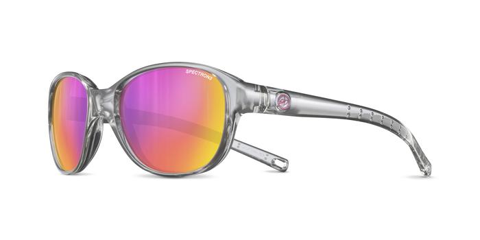Julbo Romy aurinkolasit sopivat noin 4 - 8 -vuotiaille lapsille. Tyylikkäät ja sirot Romy aurinkolasit on suunniteltu sopimaan pienille lapsille ja heidän kasvojensa mittasuhteille ja suojaavat silmiä tehokkaasti auringon haitallisilta säteiltä. Aurinkolasien sangoissa on reiät, joihin voi halutessaan kiinnittää remmin.